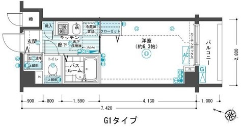 | 間取り | 1K | 専有面積 | 20.77m2 | 敷金 | 1ヶ月 | 礼金 | 1ヶ月 |