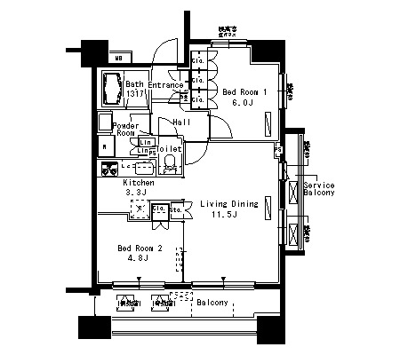 | 間取り | 2LDK | 専有面積 | 57.17m2 | 敷金 | 48.2万円 | 礼金 | なし |