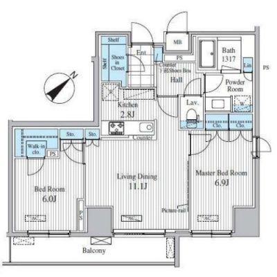 | 間取り | 2LDK | 専有面積 | 65.25m2 | 敷金 | 43万円 | 礼金 | 21.5万円 |